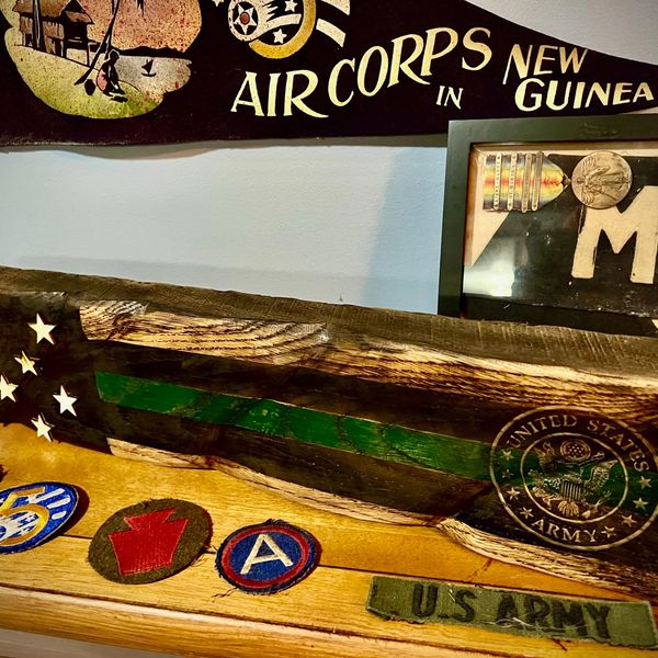 Your Choice of Service Branch. Made from rough cut red oak. Simple in design yet stunning as an accent piece in your office or den. Measures 22x6. Customization available,